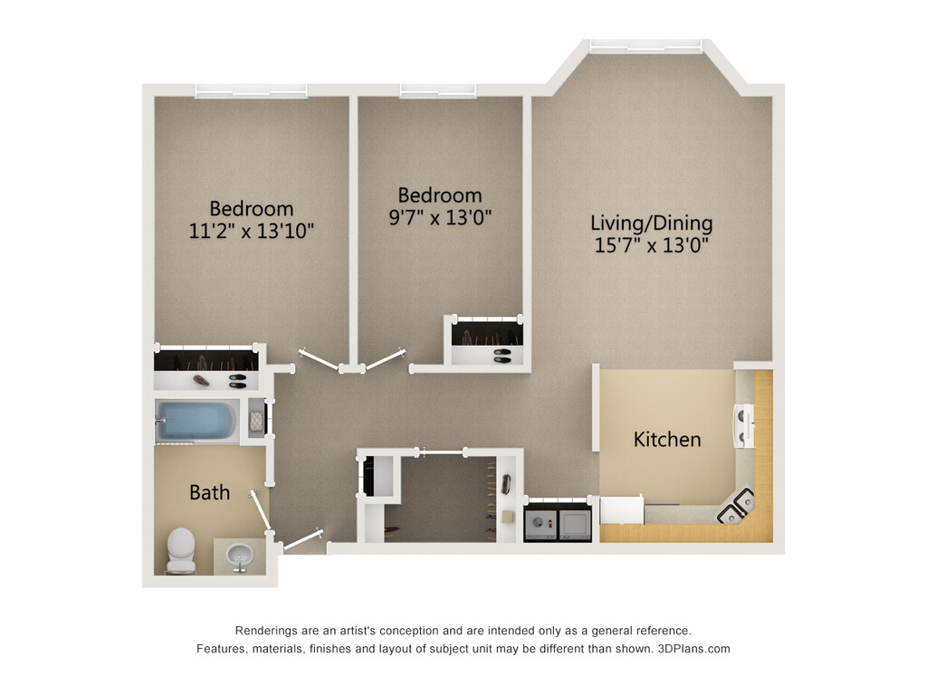 1 Bed 1 Bath (C) - Floorplan 1 2 Bedrooms