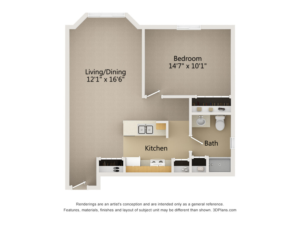 1 Bed, 1 Bath, 612 sq ftModel Gallery