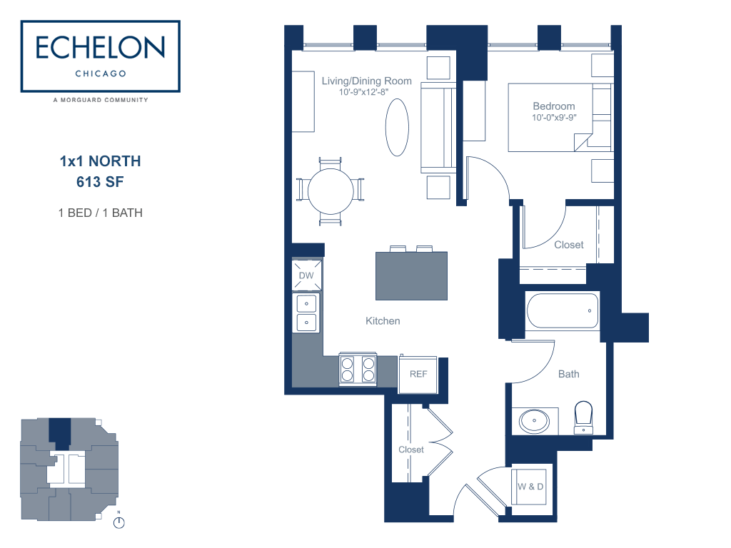 Apartment Model: 1x1 NorthFrom $2,3021 Bedroom, 1 Bath, 613 sq ftAvailable Now![]()