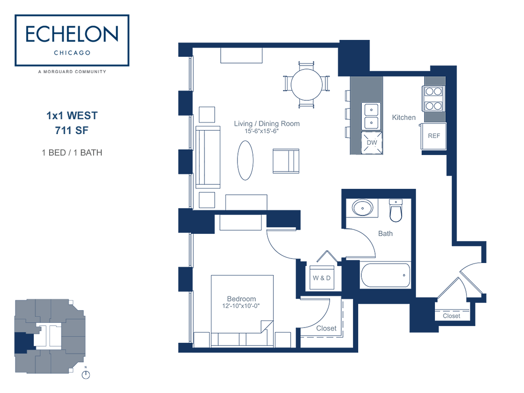 Located at the edge of West Loop and River North, Echelon's impeccably designed residences are complemented by impressive views of the city skyline, in-demand features, and upscale amenities. Entering the lobby, residents are welcomed home by a dedicated 24-hour concierge. Echelon's collection of amenities includes an outdoor pool, sundeck with grilling stations, fitness center, resident lounge, and business center. Beautifully appointed residences feature modern kitchens with stainless steel appliances and granite countertops, washer and dryer, spacious bathrooms, and an abundance of natural light. It's all waiting for you here, at Echelon Chicago. Contact us today for your personal tour!