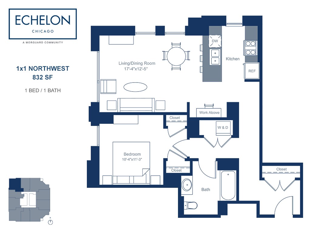1 Bed, 1 Bath, 832 sq ftAvailable NowLargest 1 BedroomThis is the largest 1 Bedroom at this PropertyModel Gallery