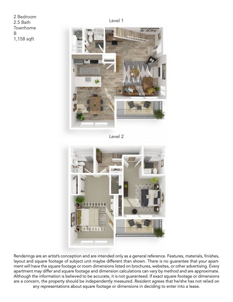 2 Beds, 2.5 Baths, 1158 sq ftModel Gallery
