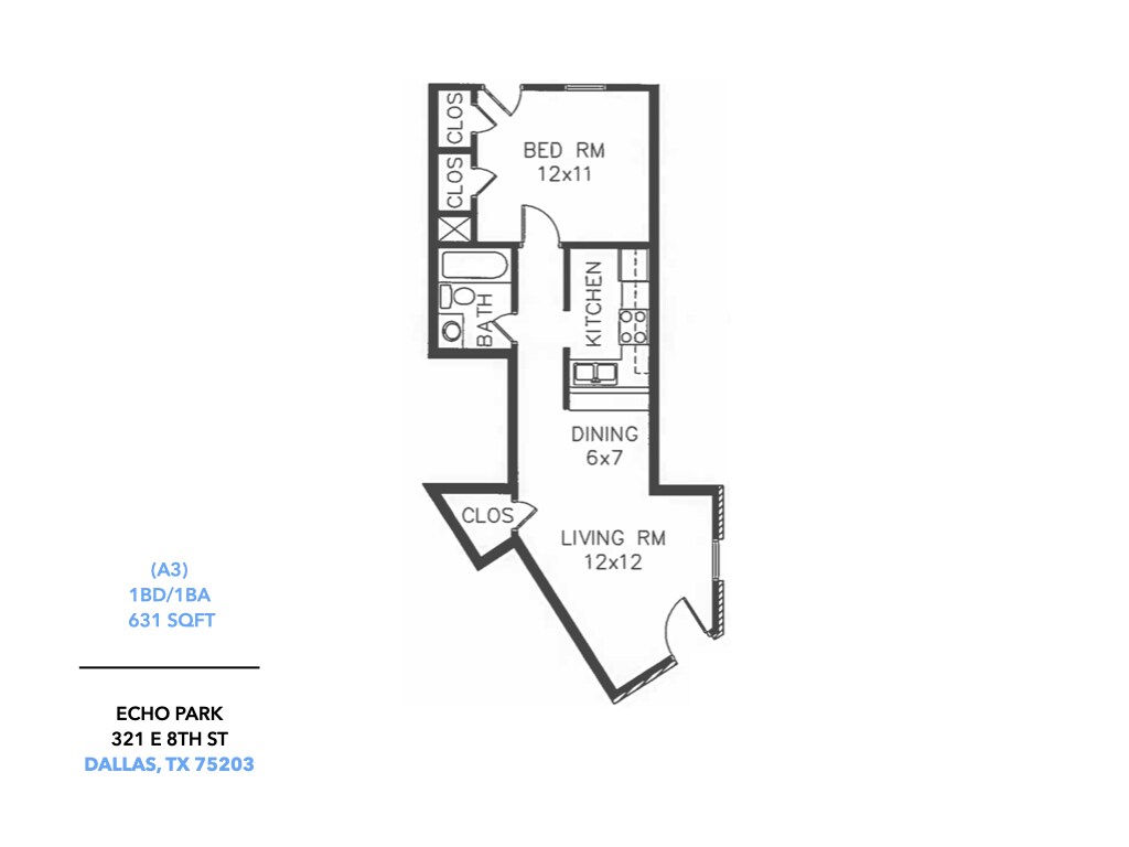 Apartment Model: A3-ECHO1 Bedroom, 1 Bath, 631 sq ftUnavailableA3-ECHO - Floorplan 1 2 Bedrooms