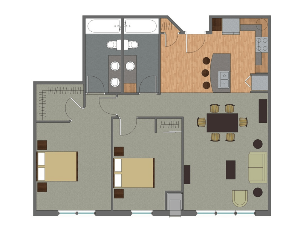 2 Beds, 2 Baths, 845 sq ftModel Gallery