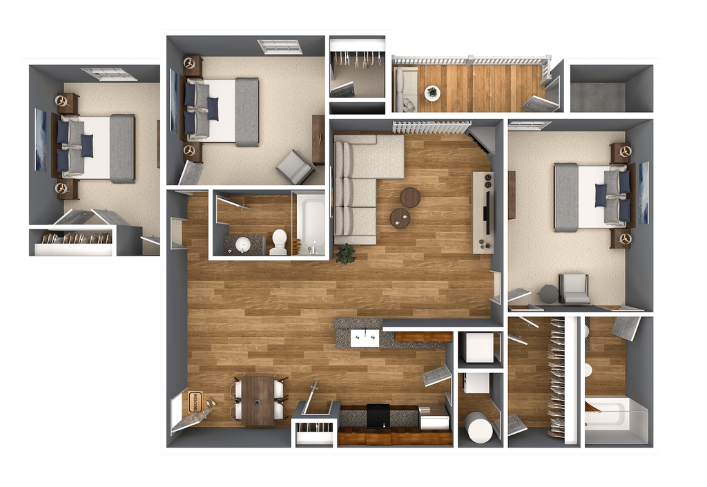 2 Beds, 2 Baths, 1102 sq ftModel Gallery
