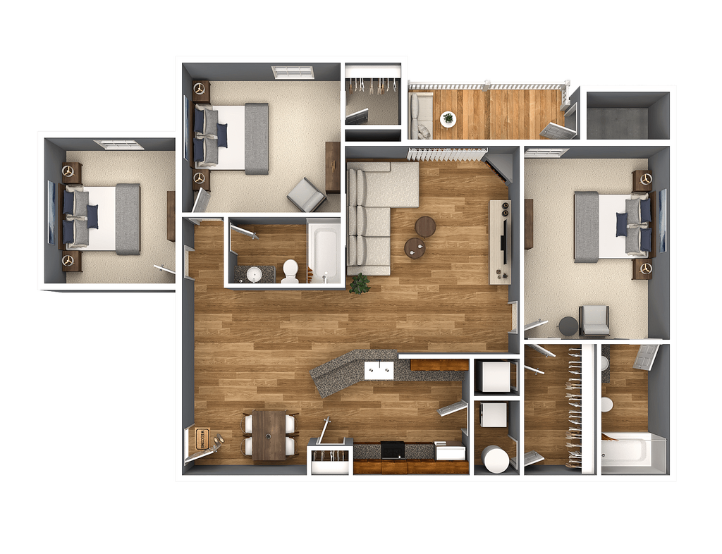 Apartment Model: The EvergreenFrom $1,4093 Bedroom, 2 Bath, 1296 sq ftAvailable Now![]()