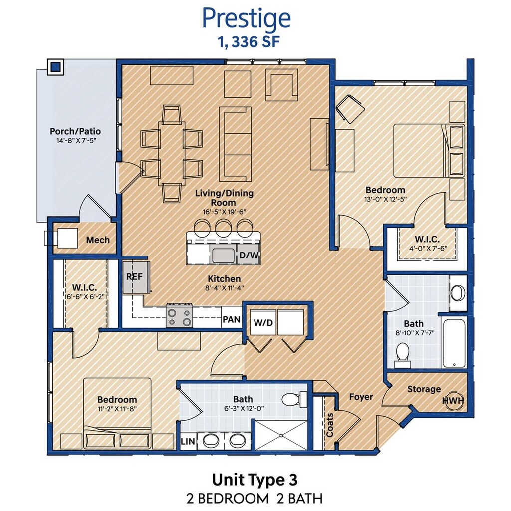 Prestige - Floorplan 1 Apartment Unit: 1000-1202Apartment Model: Prestige$2,2752 Bedroom, 2 Bath, 1336 sq ftAvailable November 10, 2025Transcend