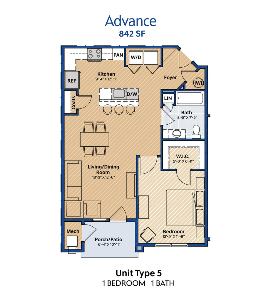 Apartment Model: AdvanceCall For Rates1 Bedroom, 1 Bath, 842 sq ftUnavailable![]()