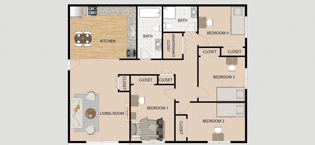 4 Beds, 2 Baths, 1100 sq ftAvailable Jun 12Model Gallery