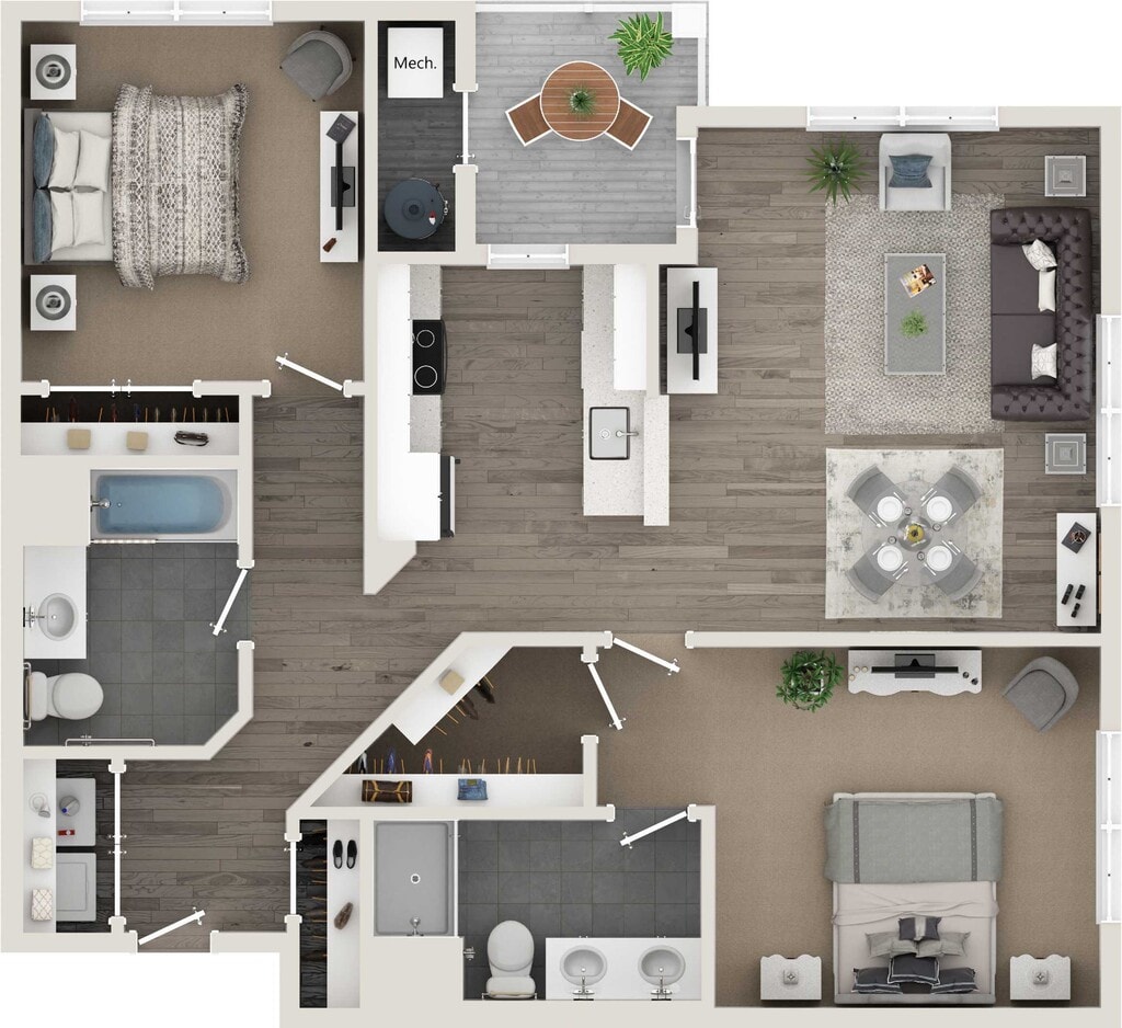 2 Beds, 2 Baths, 971 sq ftModel Gallery