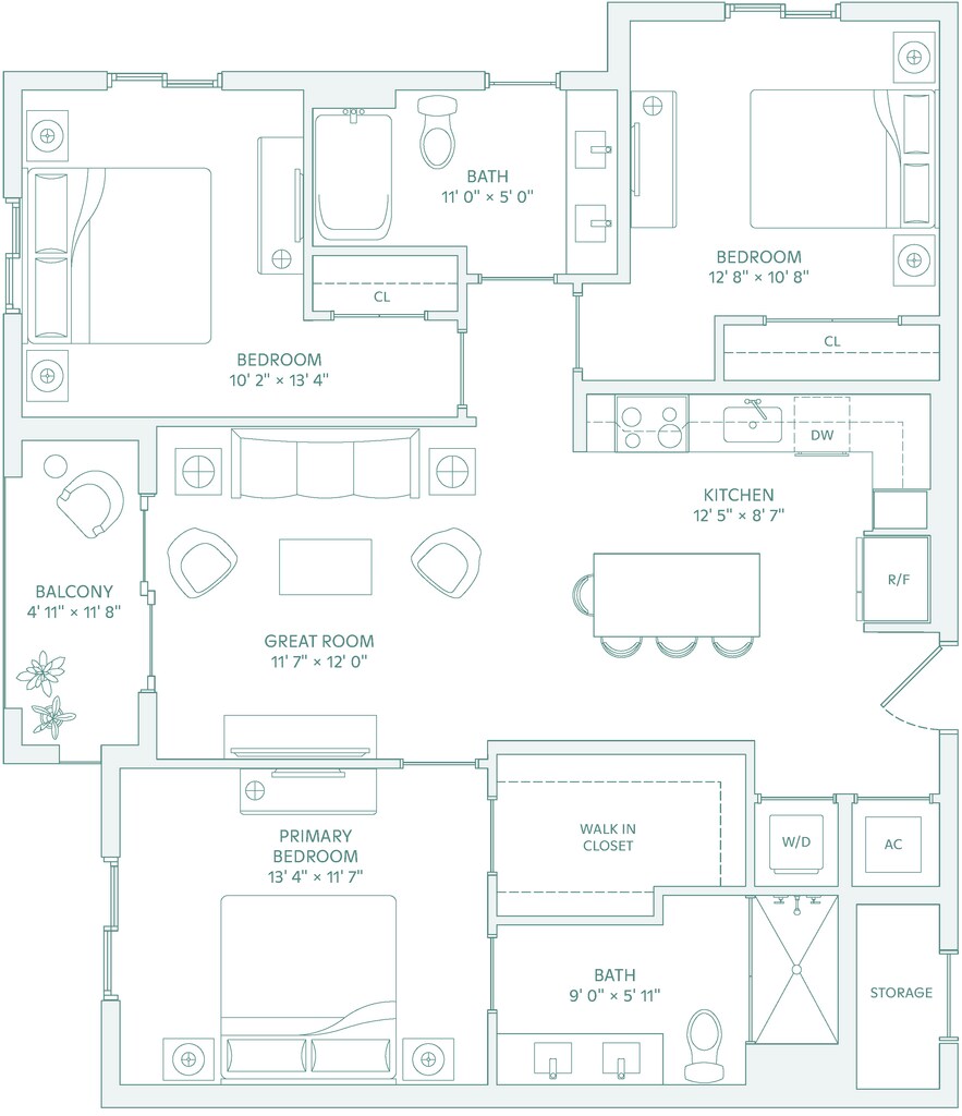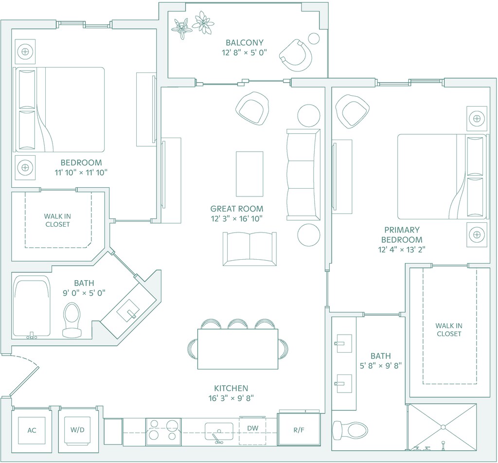 Apartment Model: A2From $2,1701 Bedroom, 1 Bath, 750 sq ftAvailable Now![]()