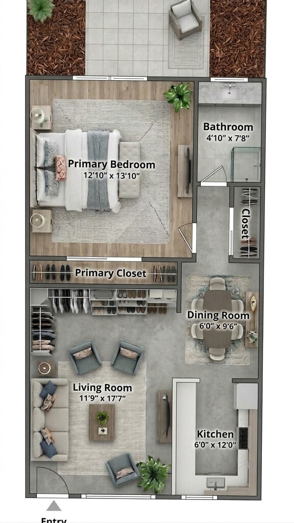 Apartment Unit: 107Apartment Model: 1st Floor/ No yard$1,6001 Bedroom, 1 Bath, 712 sq ftAvailable NowFloorplansPhotos![]()