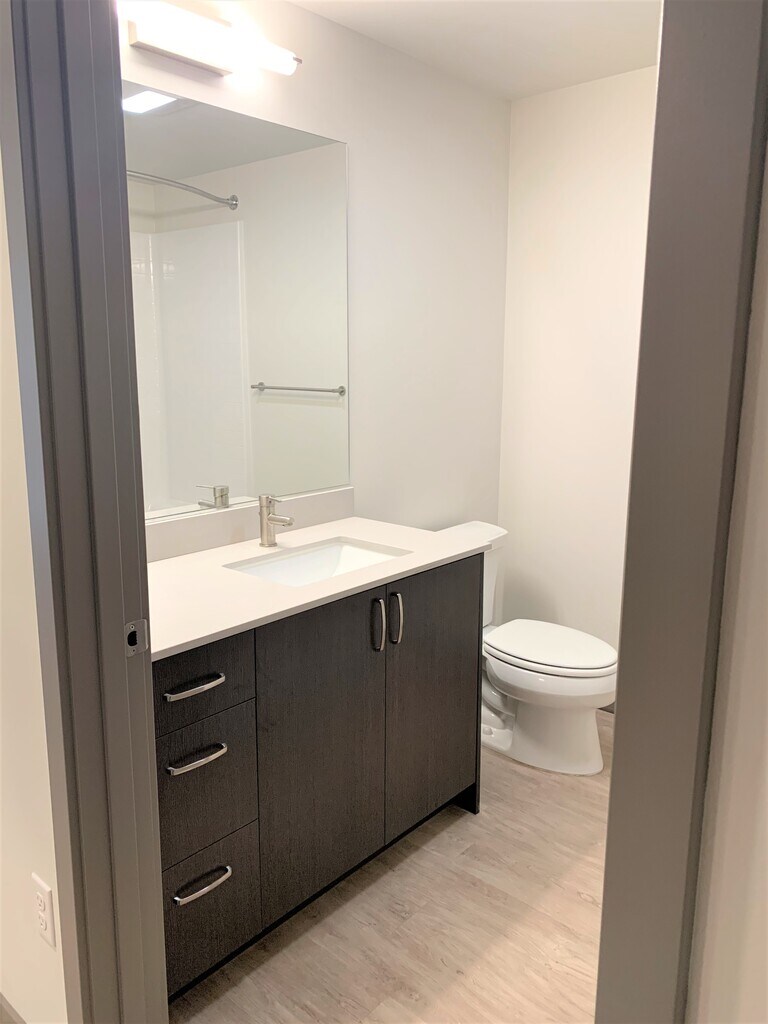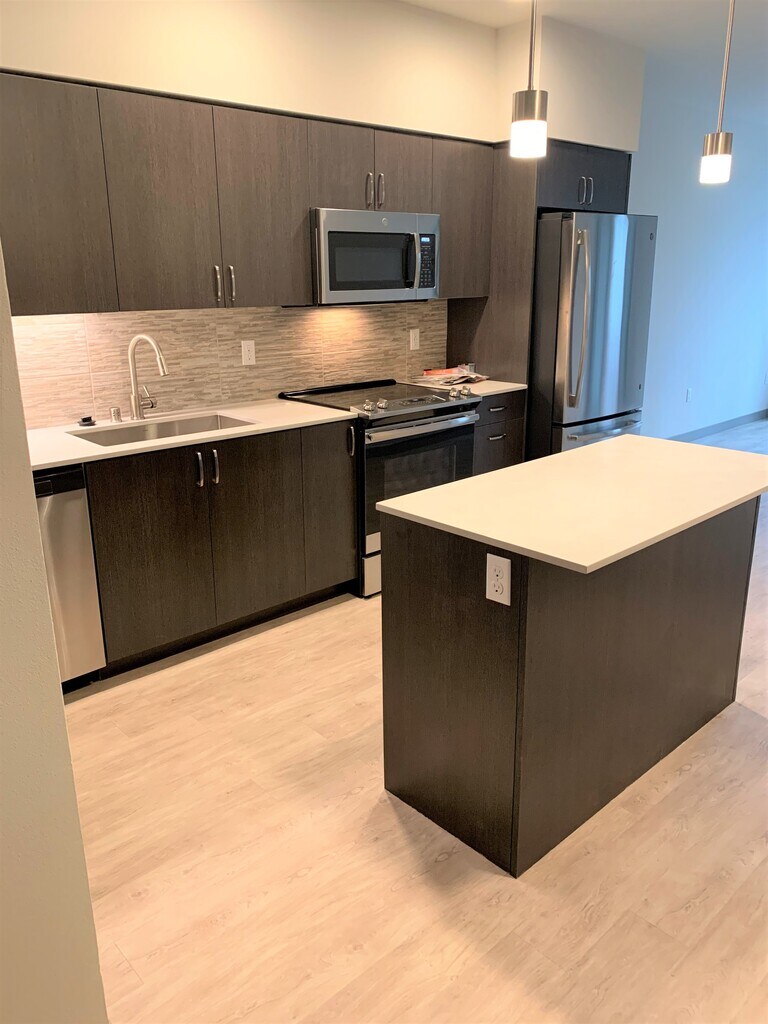 May 13, 2020Beautiful new construction.. who doesn't love a brand new never-lived-in apartment?! Stainless appliances, awesome huge refrigerator, love the faux-wood flooring and backslash in the kitchen. The fitness center is quite impressive.. although not sure I'll use it myself.. haha. Nice, safe location.. living walking distance to 3-different grocery stores has been amazing. Staff has been great to work with.. overall--very happy!Review from Apartments.com