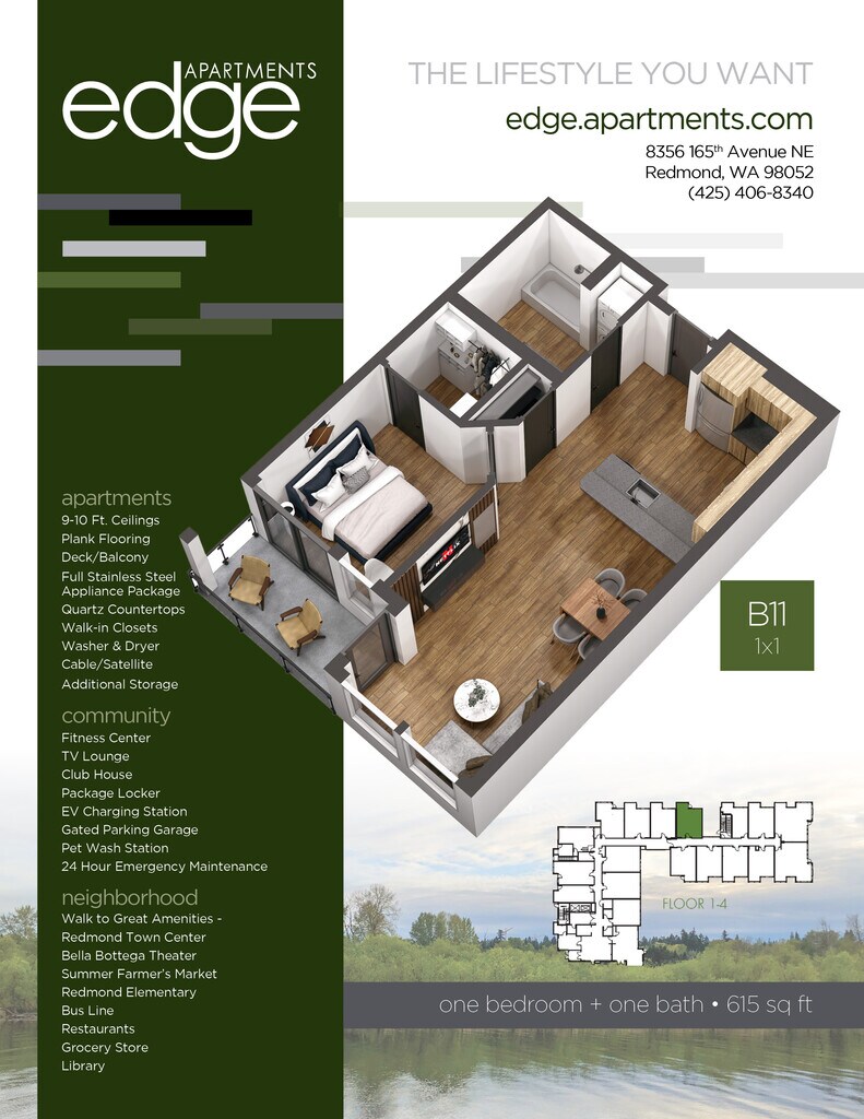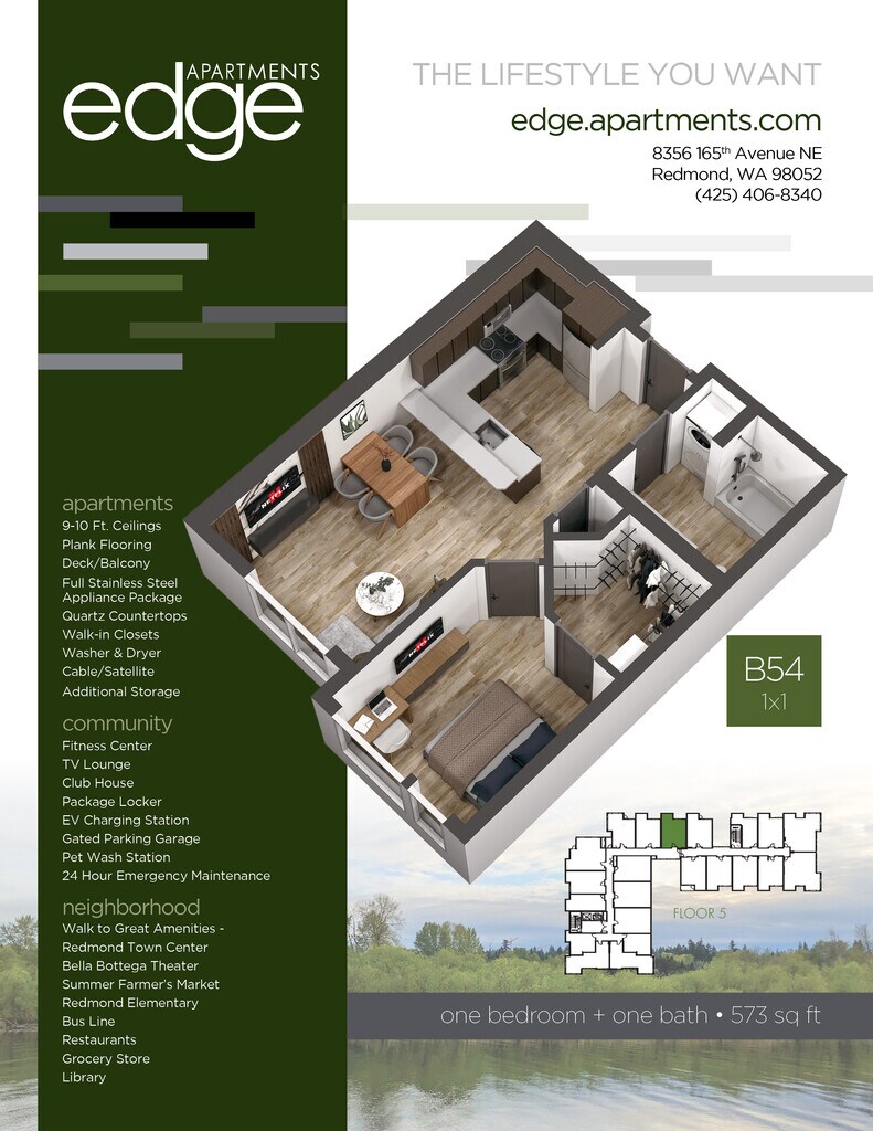 Edge Apartments is located in the Downtown Redmond Neighborhood and 98052 Zip code of Redmond, WA. This community is professionally managed by Precision Management