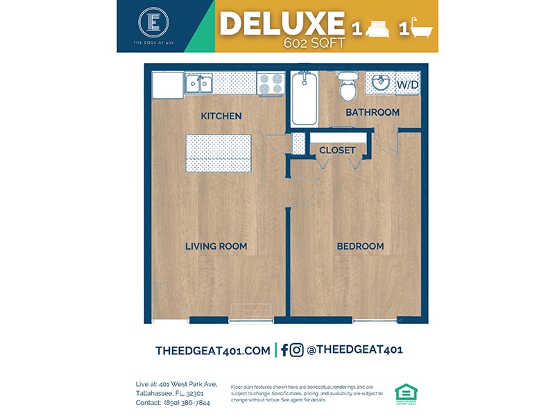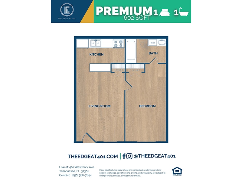 Edge at 401 offers 1 Bedroom apartments starting from $1,049 and having 602 sq ft. Here is the current pricing and availability: