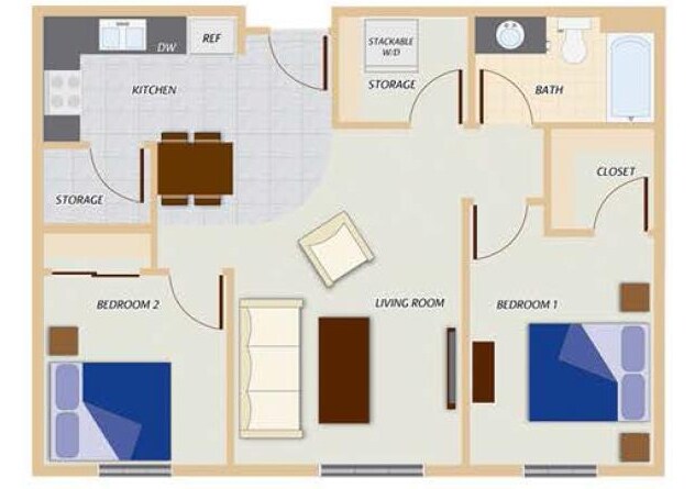 Edgerton Place Phase II - 1 Bed 1 Bath - Floorplan 11 2 Bedrooms