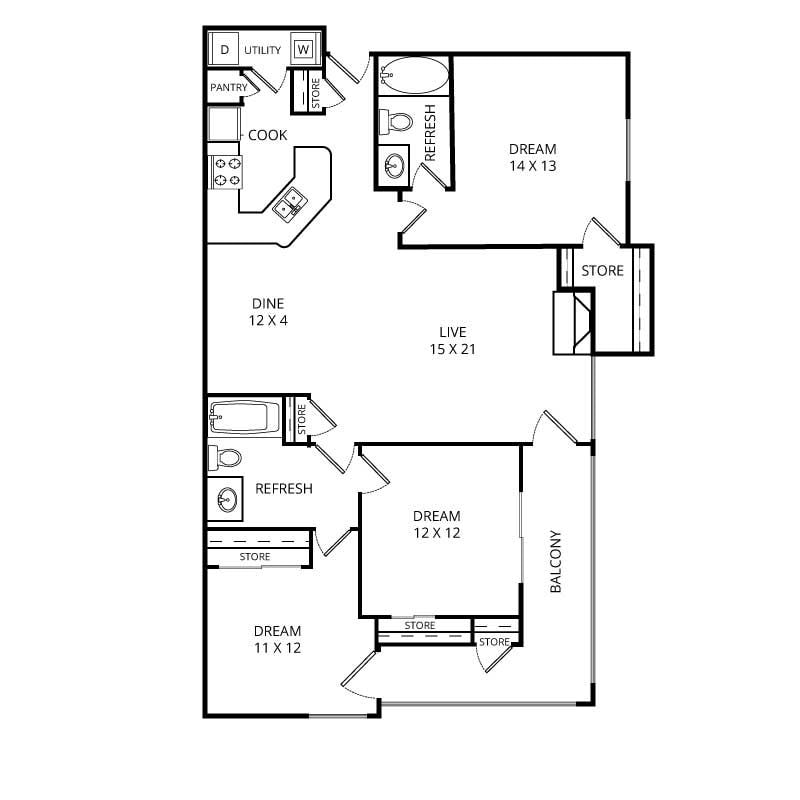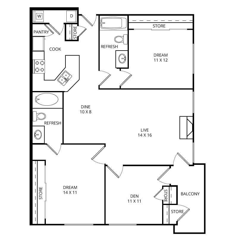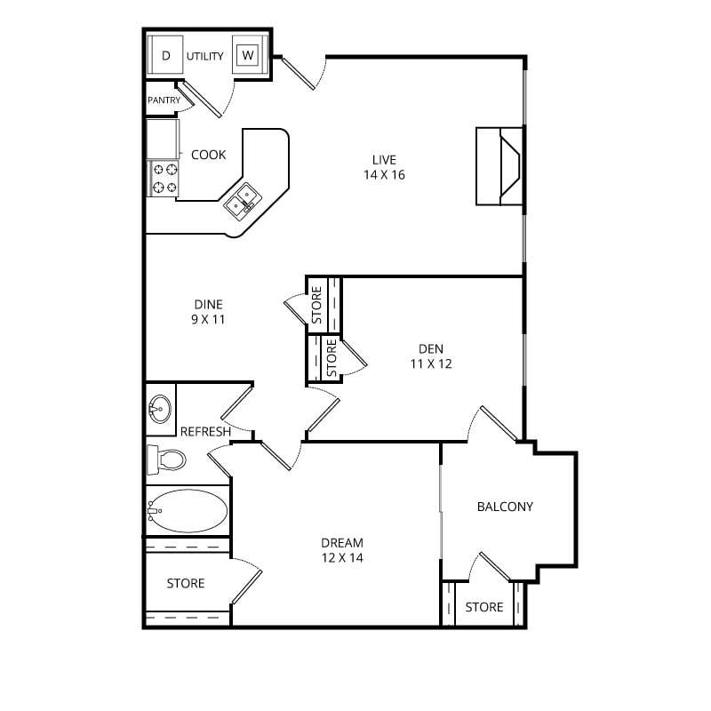 1 Bed, 1 Bath, 918 sq ftAvailable NowLargest 1 BedroomThis is the largest 1 Bedroom at this PropertyModel Gallery