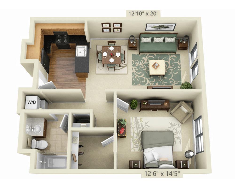 Studio, 1 Bath, 520-600 sq ftLargest StudioThis is the largest Studio at this PropertyModel Gallery