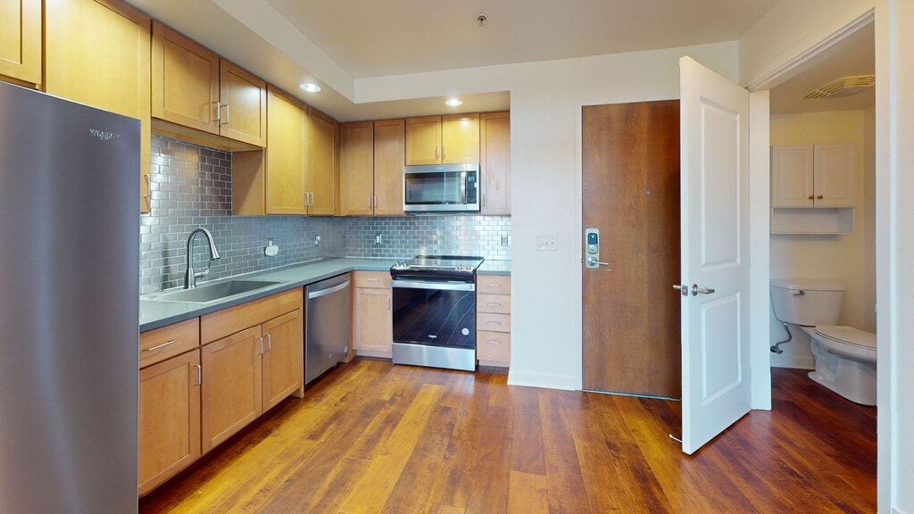 In the heart of San Francisco’s Mission Bay and SoMa neighborhood, Edgewater boasts stylish amenities and upscale floor plans. Now offering furnished and unfurnished apartments, these San Francisco apartments feature spacious rooms with picturesque views of the Bay, large closets, in-home washers/dryers, and updated kitchens. Residents enjoy the multi-level fitness studio, quiet courtyard with outdoor kitchens, and promenade. Just blocks from Oracle Park, Edgewater is only minutes from the 101 and 280 Freeways, and the nearby CalTrain and Muni Metro stations. Experience luxury apartment living at Edgewater. We are currently offering self-guided tours and virtual appointments. These units are rental units subject to the San Francisco Rent Ordinance, which limits evictions without just cause, and which states that any waiver by a tenant of their rights under the Rent Ordinance is void as contrary to public policy.
