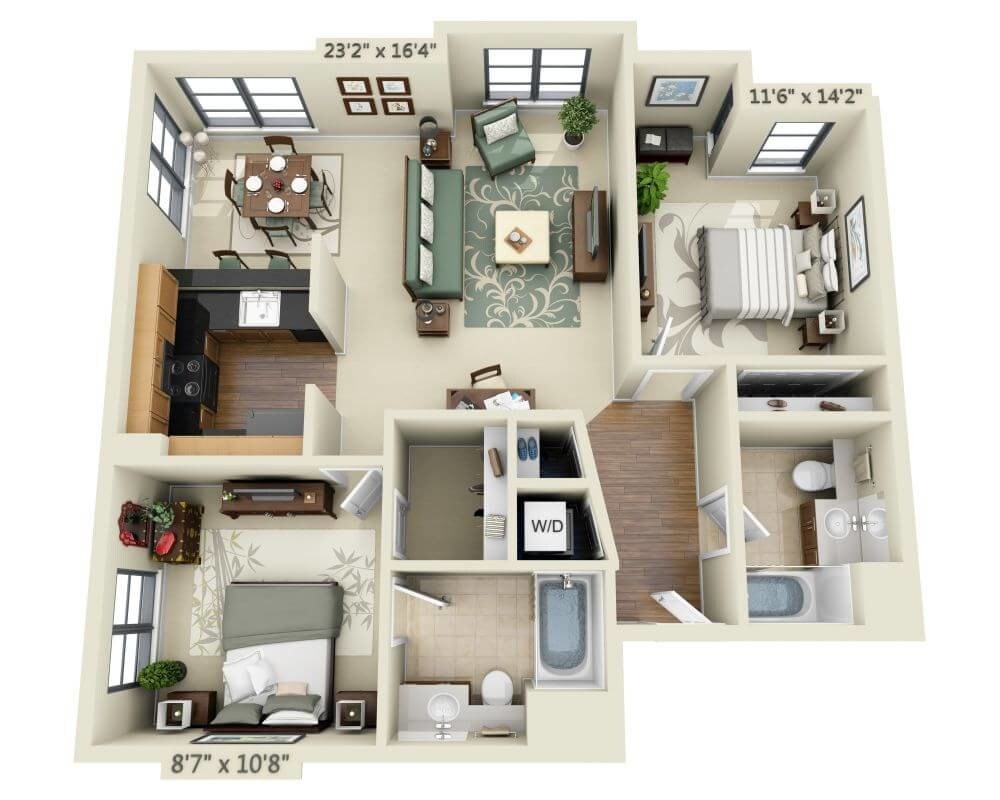 1 Bed, 1 Bath, 835-1055 sq ftAvailable NowModel Gallery