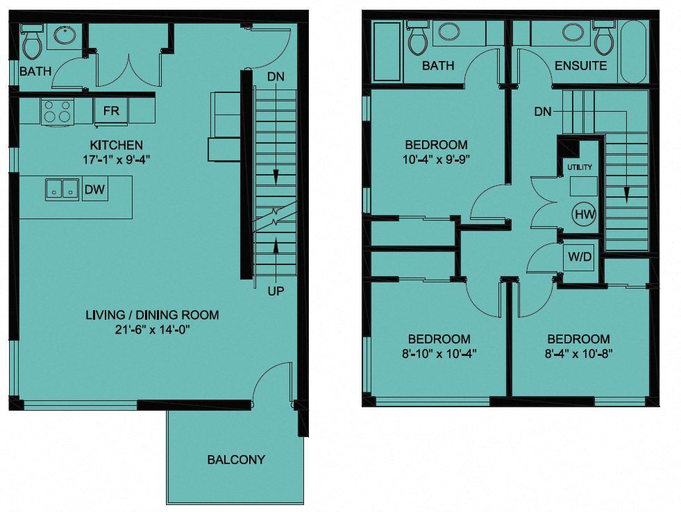 3 Beds, 2.5 Baths, 1262 sq ftAvailable NowLargest 3 BedroomThis is the largest 3 Bedroom at this PropertyModel Gallery