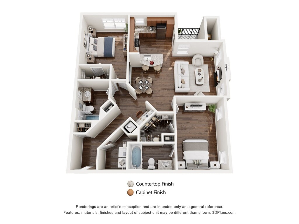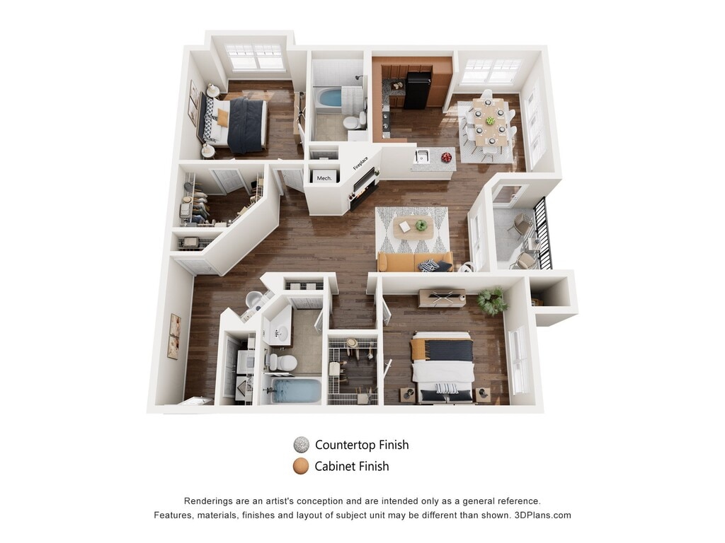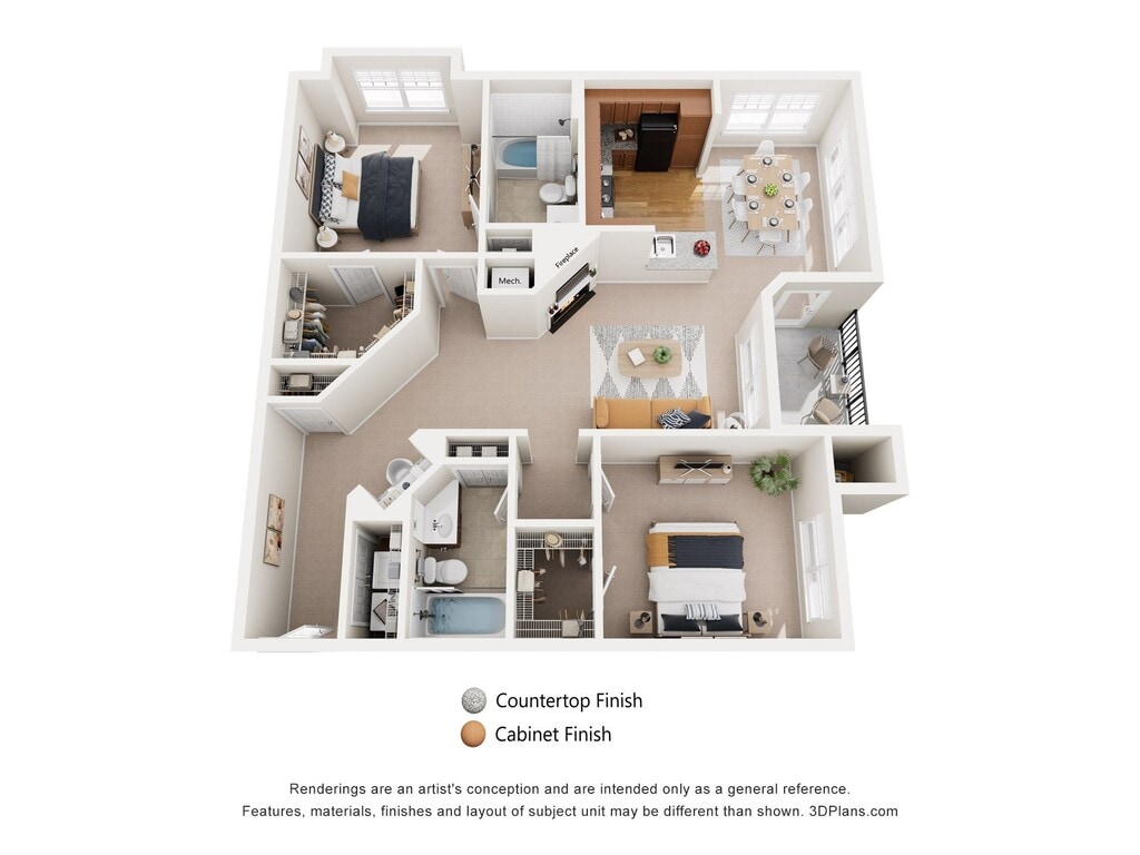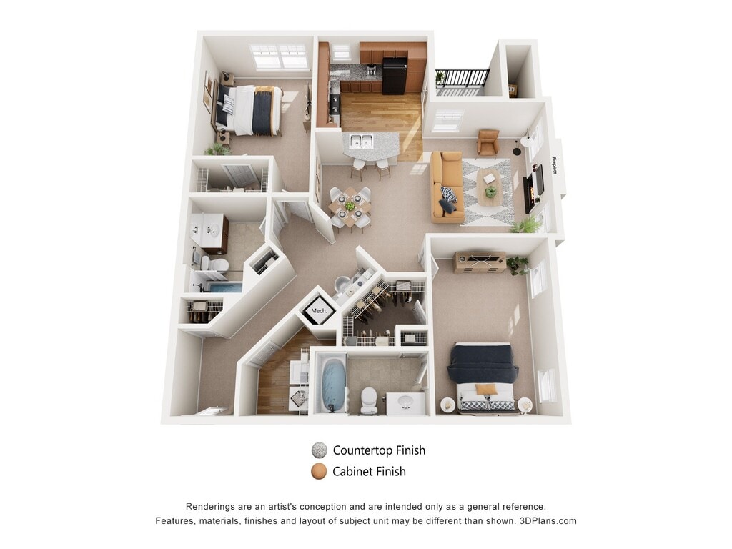Lilac - Floorplan 1 Floor plans are artist's rendering. All dimensions are approximate. Actual product and specifications may vary in dimension or detail. Not all features are available in every rental home. Please see a representative for details.
