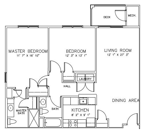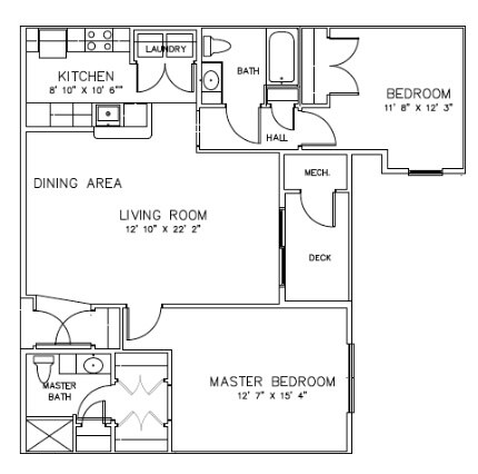 2 Beds, 2 Baths, 1241 sq ftLargest 2 BedroomThis is the largest 2 Bedroom at this PropertyModel Gallery