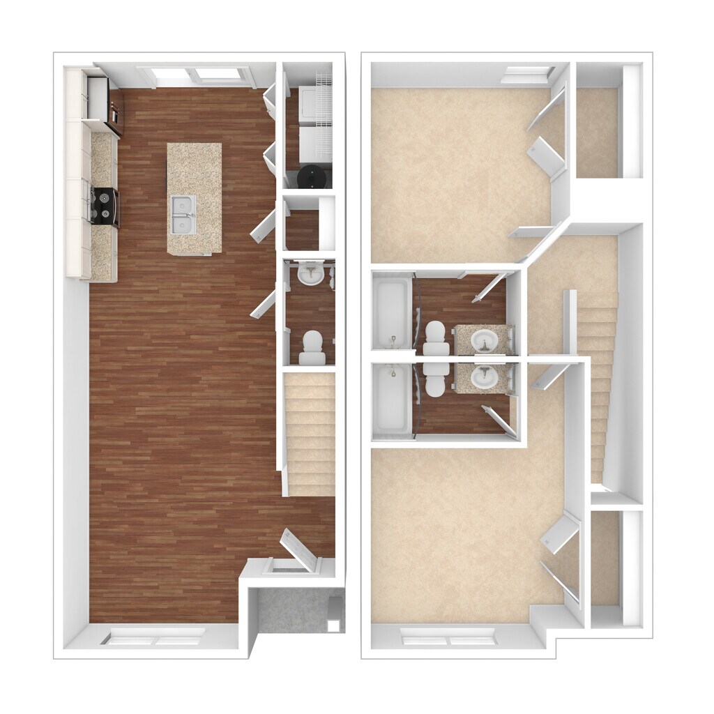 2 Beds, 2.5 Baths, 1172 sq ftModel Gallery