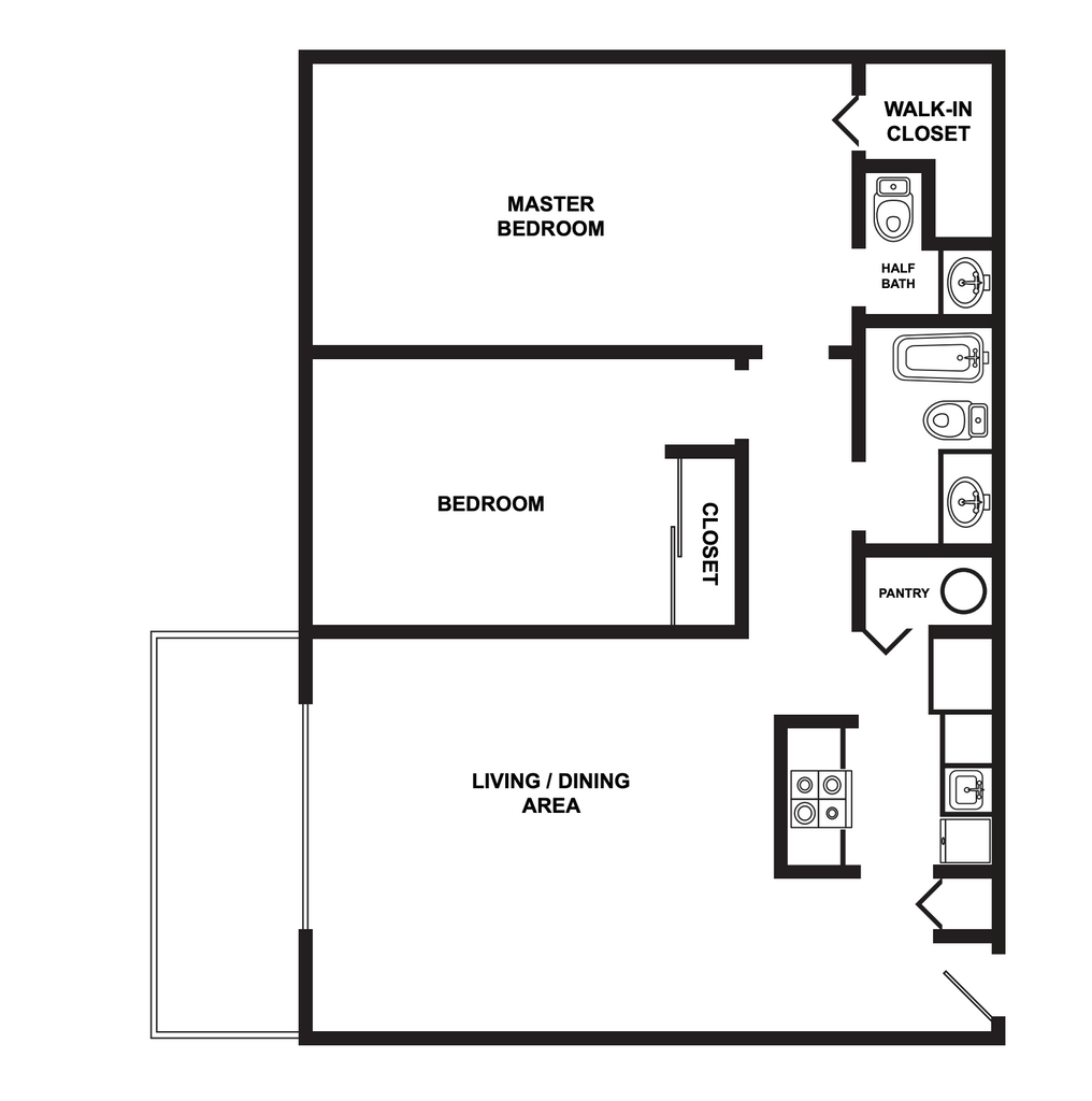 1BR 1 Bath - Floorplan 2 2 Bedrooms