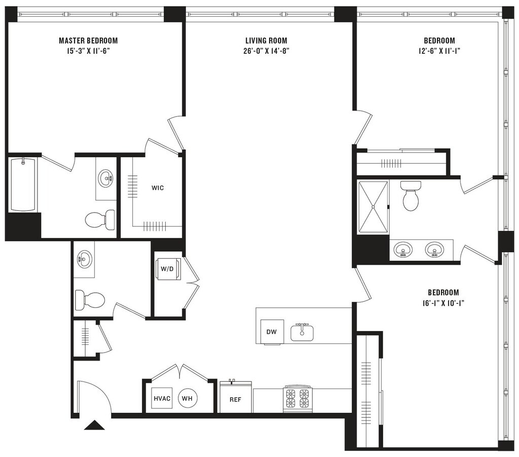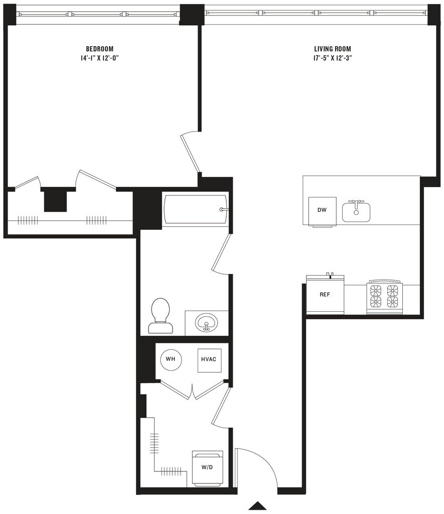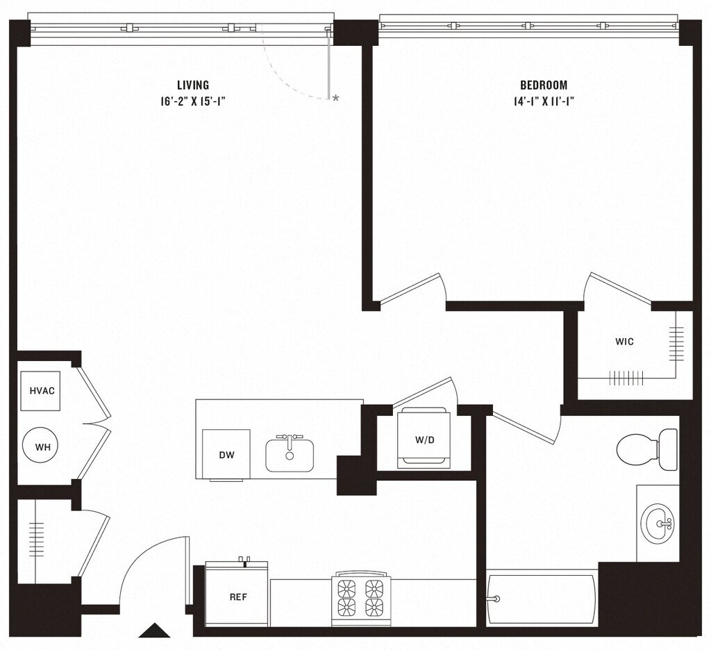 Studio (US-01) - Floorplan 1 Apartment Unit: 201Apartment Model: Studio (US-01)$1,800Studio, 1 Bath, 589 sq ftAvailable Now![]()