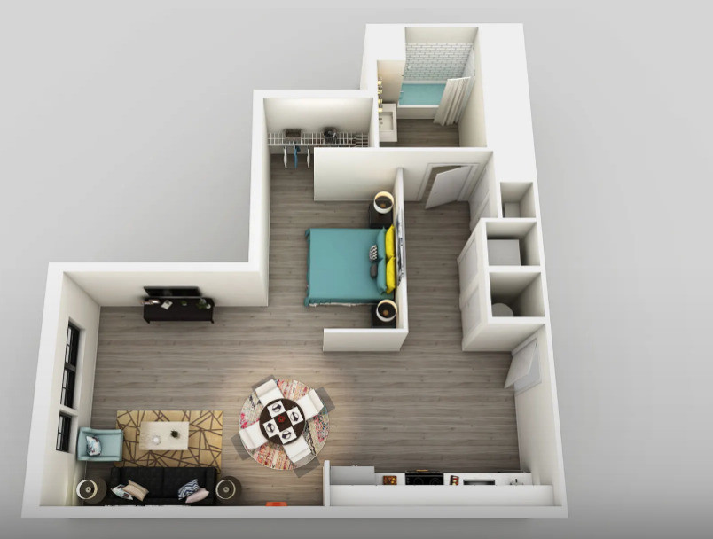 S1 - Floorplan 2 Apartment Unit: 202Apartment Model: S1$2,565Studio, 1 Bath, 738 sq ftAvailable Now1 Bedroom