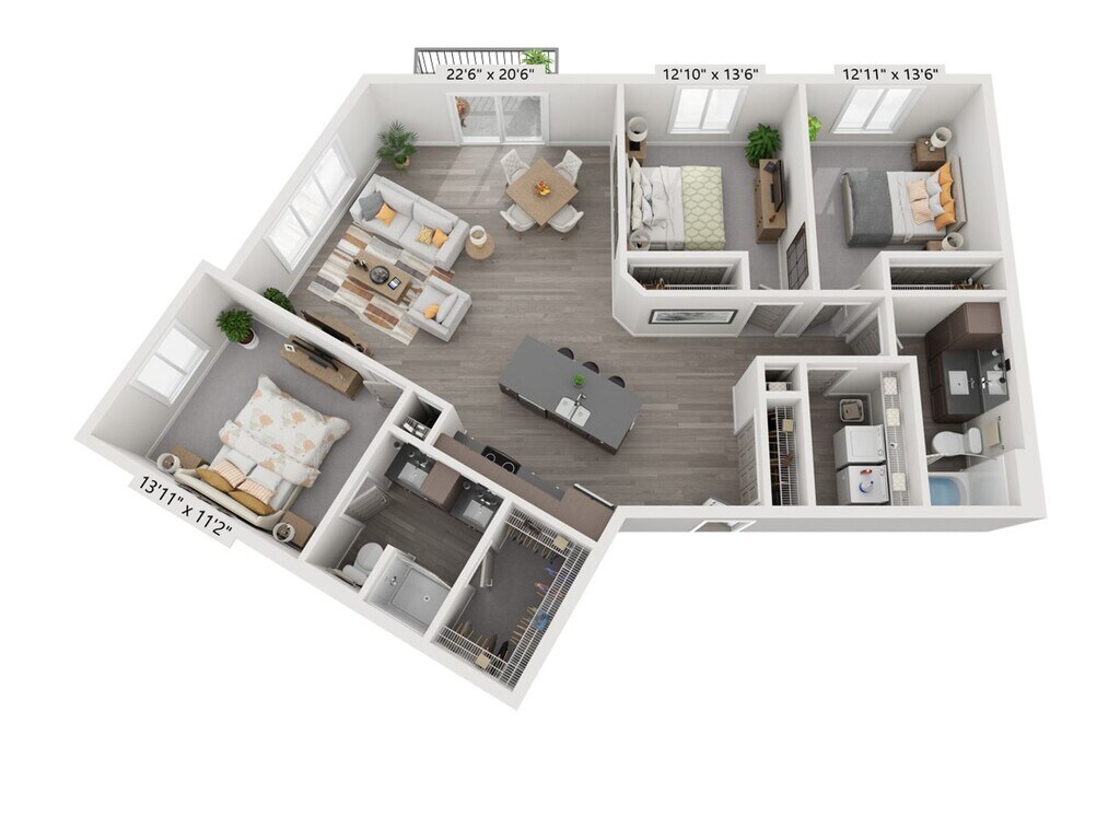 Studio, 1 Bath, 611 sq ftAvailable January 1, 2026Model Gallery