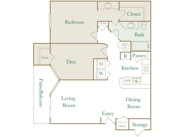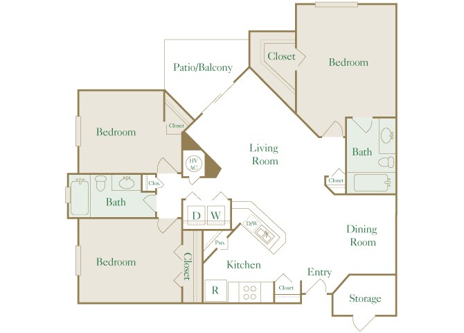 Apartment Model: A2 (Pelican with den)From $1,5761 Bedroom, 2 Bath, 1004 sq ftAvailable Now![]()