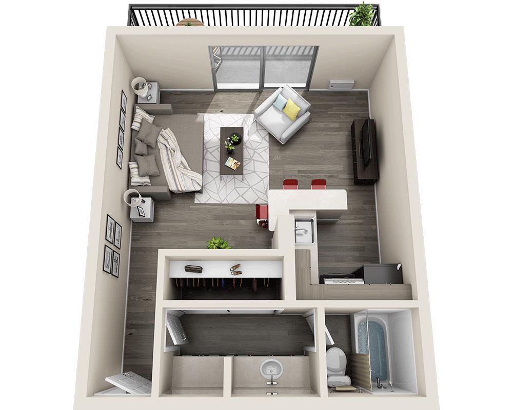 Studio, 1 Bath, 405 sq ftAvailable NowModel Gallery