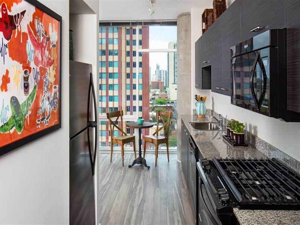 August 9, 2015You pretty much can't beat living in a new building. The 1 bedrooms have floor to ceiling windows and if you are higher than the 14th floor - the views are incredible. There is a large patio on each 1 bedroom unit that can fit plenty of furniture (a glass wall on the side is cool but almost scary if you're on a higher floor). The bedroom is large and has a huge closet. The only way it could be better is if they installed more high tech appliances - they are pretty standard. The location also ...can't be beat - you're next to two different types of trains and plenty of bus lines and walkable to different neighborhoods with bars, restaurants, shopping, etc. The rooftop views are also amazing - but as people move in, the roof gets a little crowded and the pool is on the small side. There is a gym that has new equipment and plenty of hang out/work space. The street is a little loud but since the building is new - you don't have to worry about hearing neighbors. Overall this is an awesome building and well worth the price.Read MoreReview from Apartments.com