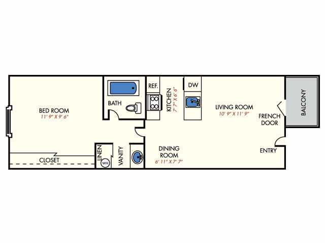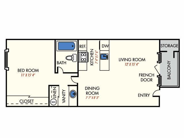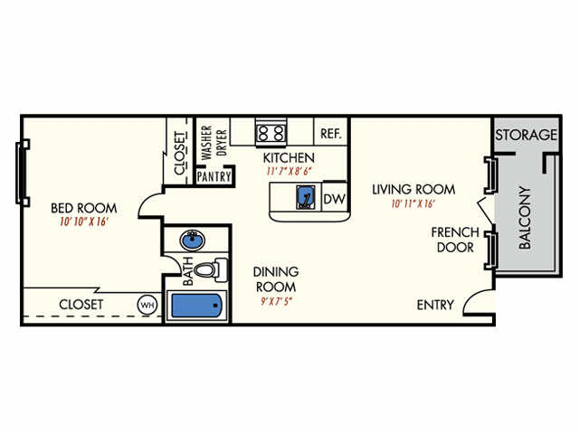 Apartment Model: The Mill CreekFrom $1,0251 Bedroom, 1 Bath, 500 sq ftAvailable Now![]()