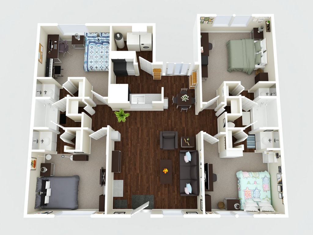 4x3 - Floorplan 1 Apartment Unit: DeluxeApartment Model: 4x34 Bedroom, 3 Bath, 1704 sq ftAvailable NowApartment Unit: PremiumApartment Model: 4x34 Bedroom, 3 Bath, 1704 sq ftAvailable NowApartment Unit: PrivateApartment Model: 4x34 Bedroom, 3 Bath, 1704 sq ftAvailable Now