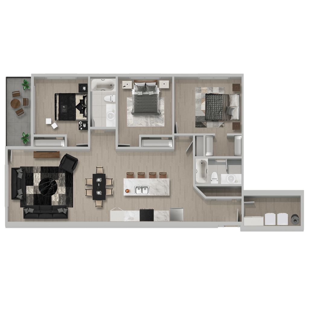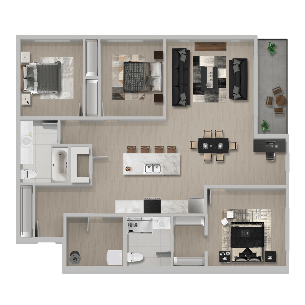 Suite C3 - Floorplan 1 Apartment Unit: 216Apartment Model: Suite C33 Bedroom, 2 Bath, 1312 sq ftAvailable January 31, 2026Suite C1