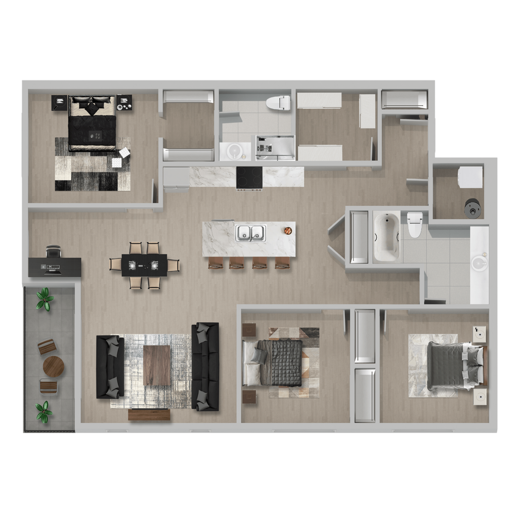 3 Beds, 2 Baths, 1380 sq ftAvailable January 31, 2026Largest 3 BedroomThis is the largest 3 Bedroom at this PropertyModel Gallery