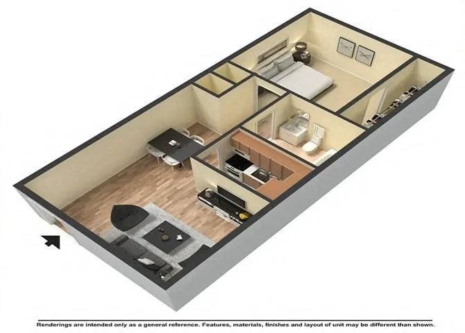 Apartment Model: 1 Bed 1 BathFrom $8751 Bedroom, 1 Bath, 555 sq ftAvailable Now![]()