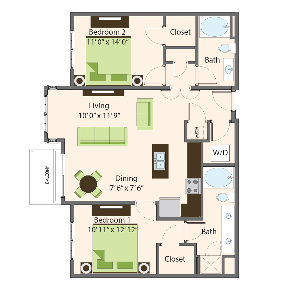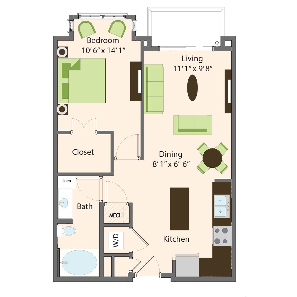 1 Bed, 1 Bath, 697-719 sq ftAvailable NowModel Gallery
