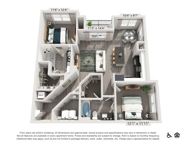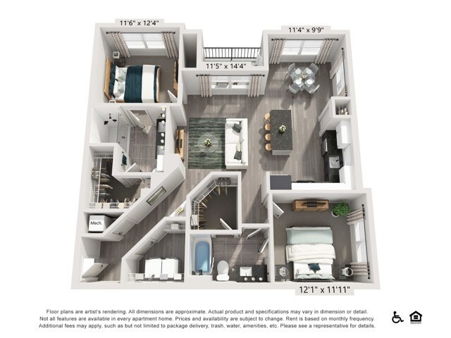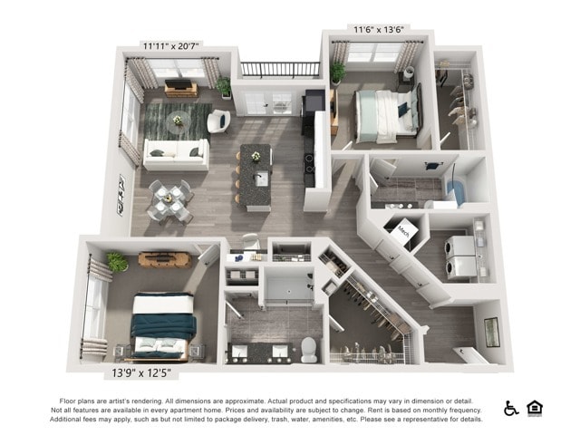 Apartment Model: A2A$1,5801 Bedroom, 1 Bath, 713 sq ftAvailable NowFloor plans are artist's rendering. All dimensions are approximate. Actual product and specifications may vary in dimension or detail. Not all features are available in every rental home. Prices and availability are subject to change. Base rent is based on monthly frequency. Additional fees may apply, such as but not limited to package delivery, trash, water, amenities, etc. Deposits vary. Please see a representative for details.