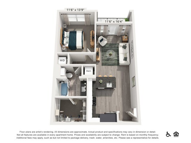 Apartment Model: A1A$1,4801 Bedroom, 1 Bath, 637 sq ftAvailable NowFloor plans are artist's rendering. All dimensions are approximate. Actual product and specifications may vary in dimension or detail. Not all features are available in every rental home. Prices and availability are subject to change. Base rent is based on monthly frequency. Additional fees may apply, such as but not limited to package delivery, trash, water, amenities, etc. Deposits vary. Please see a representative for details.
