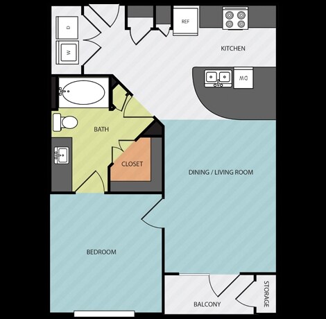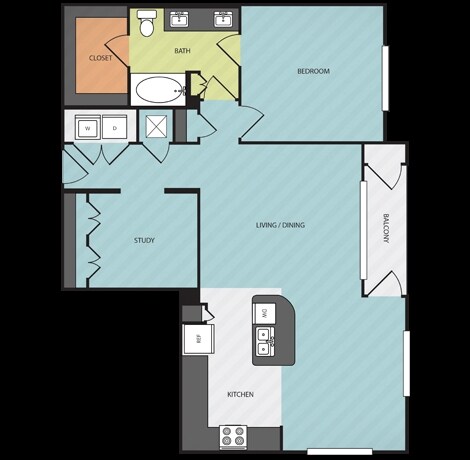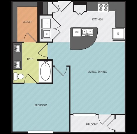 Apartment Model: A51 Bedroom, 1 Bath, 771-892 sq ftAvailable NowFloor plans are artist's rendering. All dimensions are approximate. Actual product and specifications may vary in dimension or detail. Not all features are available in every rental home. Prices and availability are subject to change. Base rent is based on monthly frequency. Additional fees may apply, such as but not limited to package delivery, trash, water, amenities, etc. Deposits vary. Please see a representative for details.