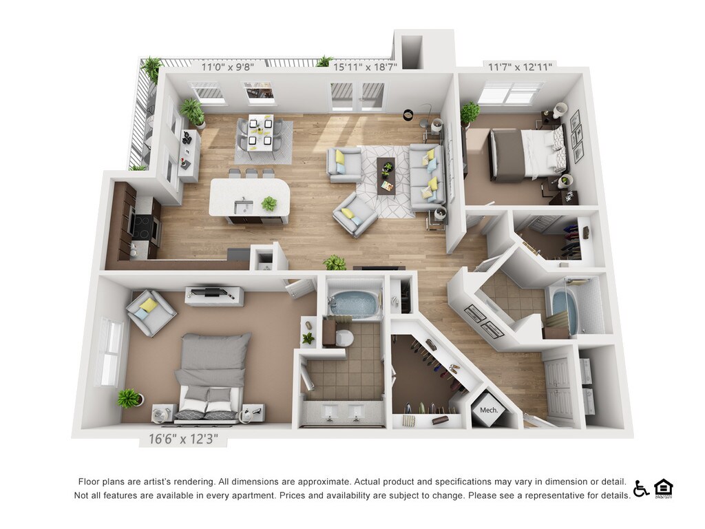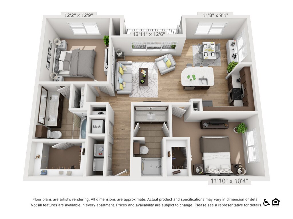 1 Bed, 1 Bath, 696-697 sq ftAvailable NowModel Gallery