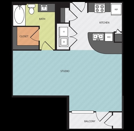Studio, 1 Bath, 505 sq ftAvailable NowModel Gallery