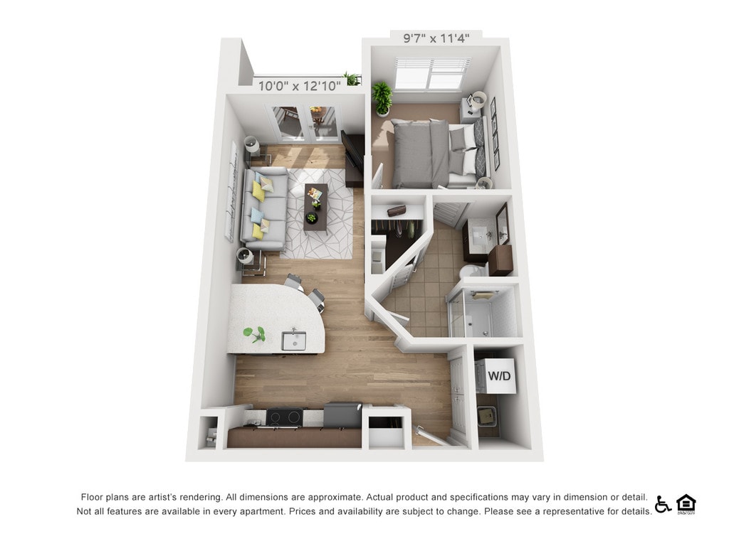 Apartment Model: A1Studio, 1 Bath, 505 sq ftAvailable NowFloorplansPhotosA1 - Image 1 A1 - Image 2 A1 - Image 3 A1 - Image 4 A1 - Image 5 Floor plans are artist's rendering. All dimensions are approximate. Actual product and specifications may vary in dimension or detail. Not all features are available in every rental home. Prices and availability are subject to change. Base rent is based on monthly frequency. Additional fees may apply, such as but not limited to package delivery, trash, water, amenities, etc. Deposits vary. Please see a representative for details.