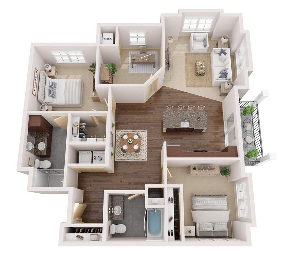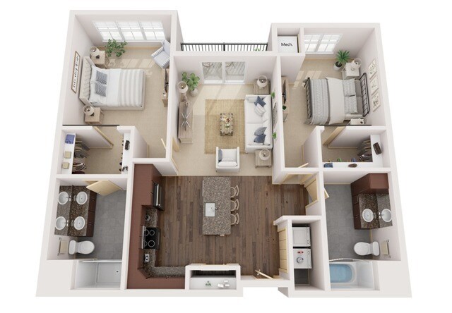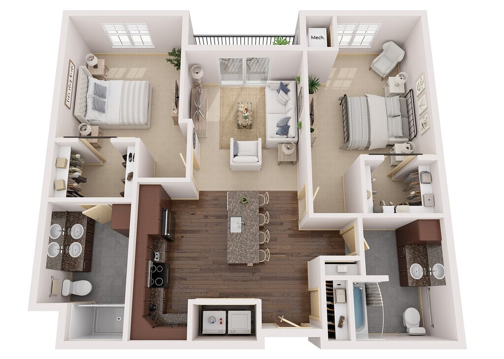 1 Bed, 1 Bath, 752 sq ftModel Gallery