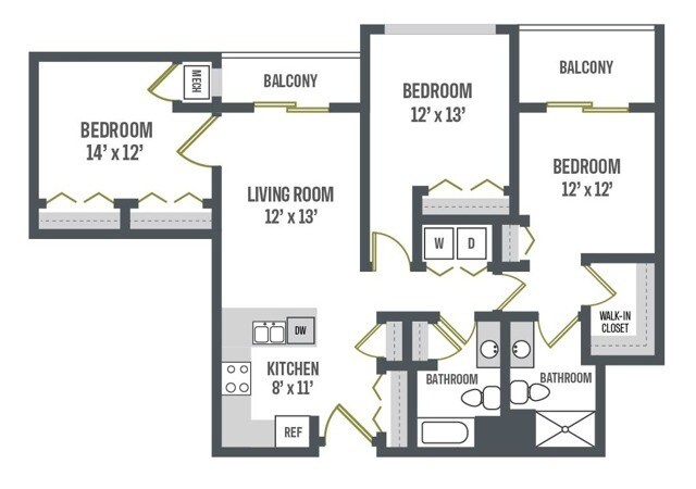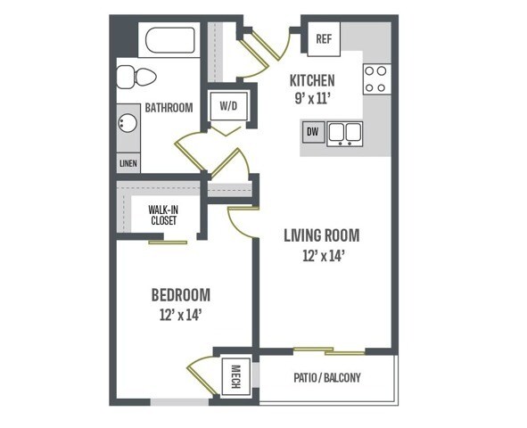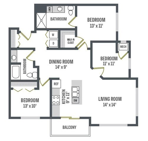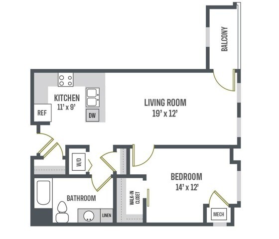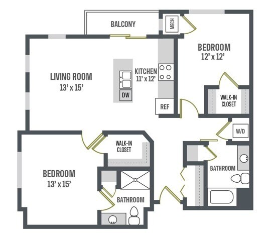 Apartment Model: B1.1From $1,4751 Bedroom, 1 Bath, 752 sq ftUnavailableFloorplansPhotos![]()