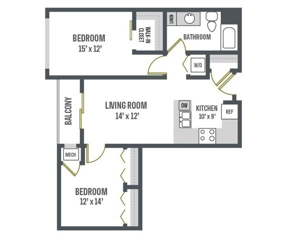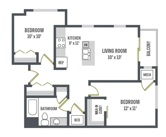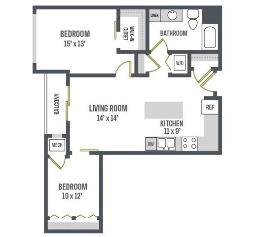 1 Bed, 1 Bath, 1011 sq ftAvailable NowLargest 1 BedroomThis is the largest 1 Bedroom at this PropertyModel Gallery